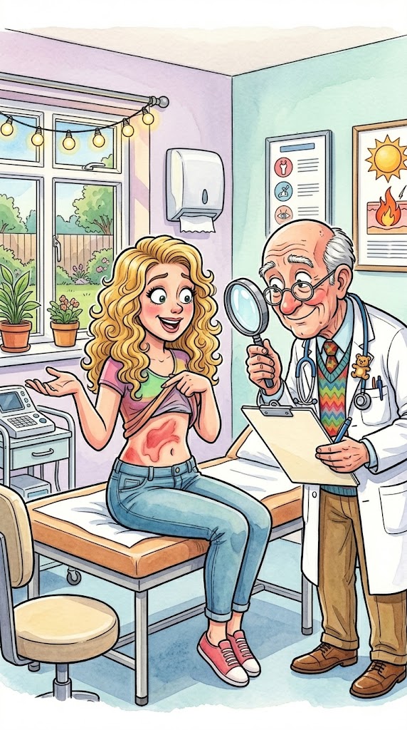 At some point a blonde went the physician with a burn on her abdomen.