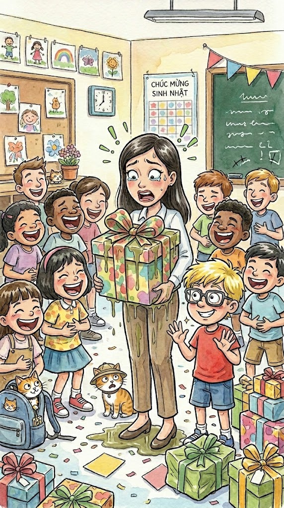 A kindergarten instructor is having her birthday and three of her college students determined to convey her a present.