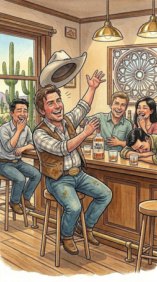 The Texan took a sip of his drink, leaned ahead, and mentioned with a smirk,