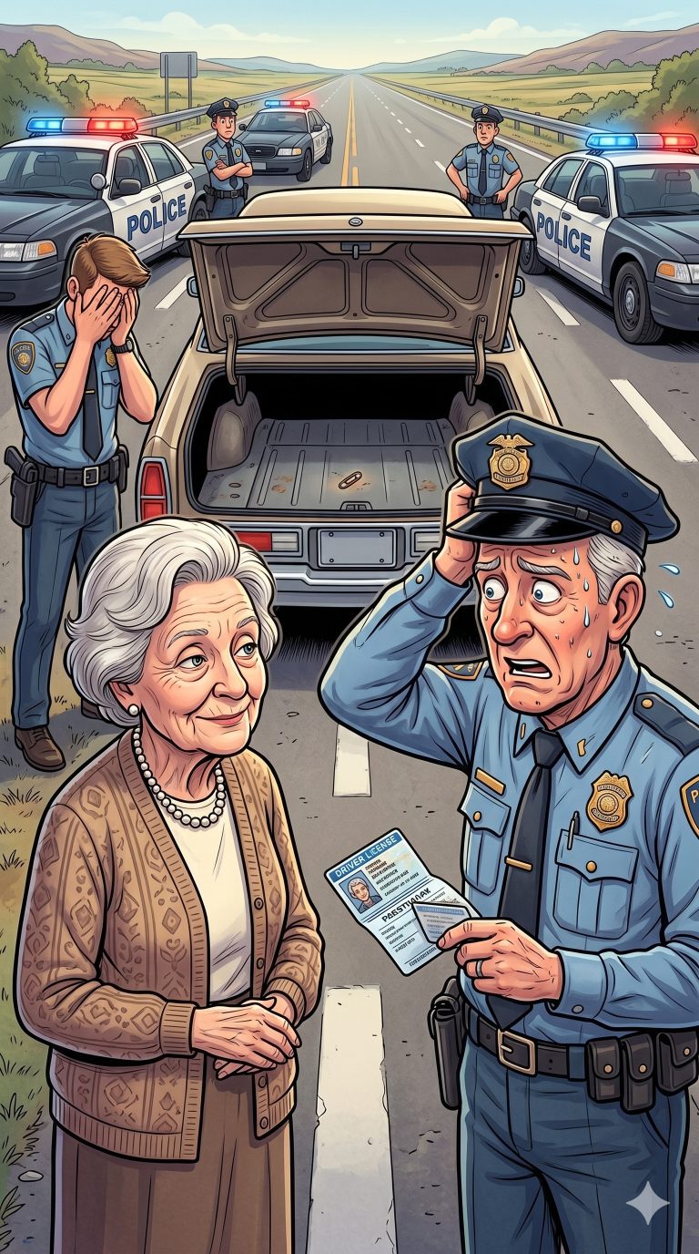 An aged lady was cruising down the interstate when she seen flashing lights in her rearview mirror…