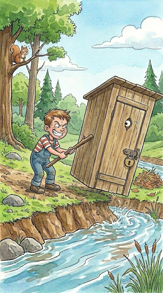 As soon as there was just a little boy who lived within the nation. That they had to make use of an outhouse, and the little boy hated it as a result of it was sizzling in the summertime, chilly within the winter and stank on a regular basis. The outhouse was sitting on the financial institution of a creek and the boy decided that at some point he would push that outhouse into the creek.