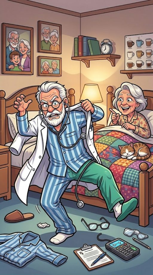 “It’s Dr. Gold,” says his spouse, passing him the telephone, “I do hope it’s not one other emergency.”