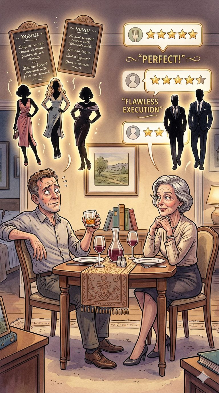 The husband doesn’t even flinch. He takes a gradual sip of his drink.
