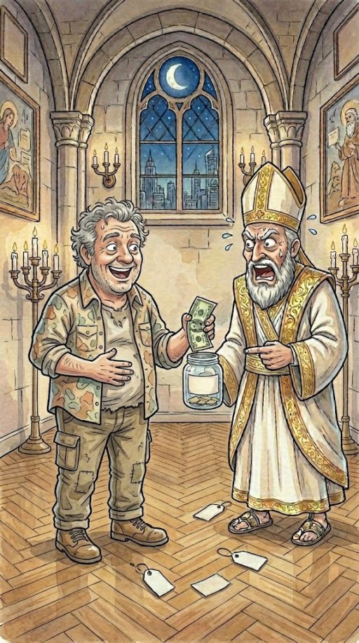The priest, who was watching, rapidly runs over to him saying, “I noticed that, you didn’t put any cash within the poor field!”