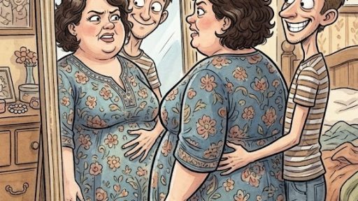 Little Johnny seems to be up at his mom with a mischievous smile and says, “Are you going to inform him, or ought to I?”