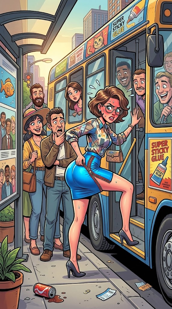 When the bus arrived and it was her flip to get on, she realized that her skirt was so tight that