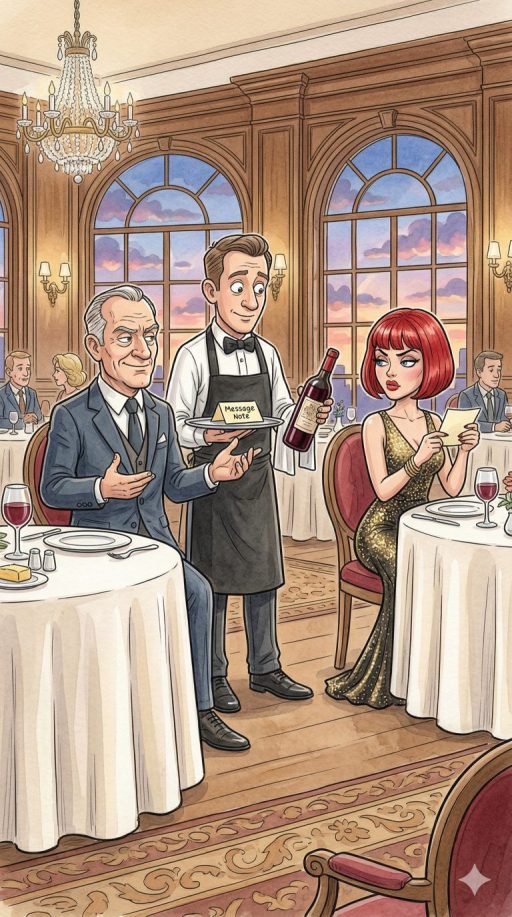 An previous man requested a waiter to take a bottle of Merlot over to a gorgeous girl.