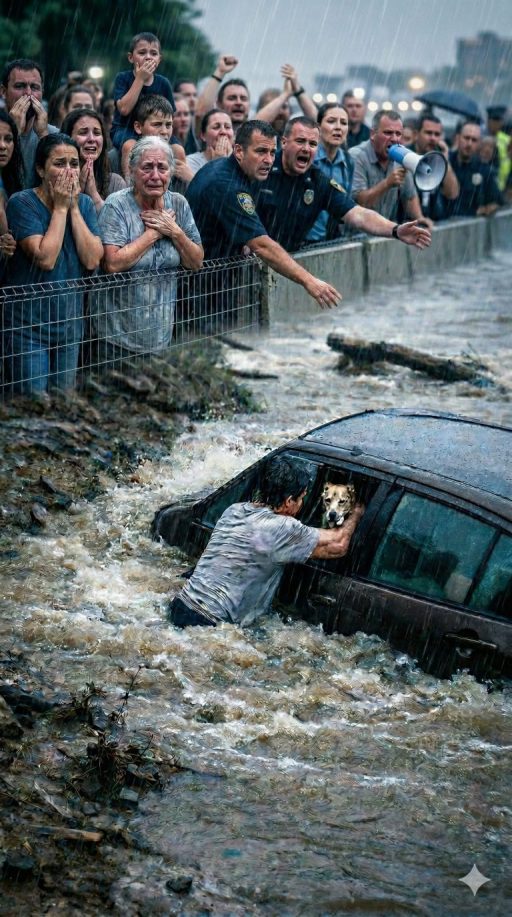 THE CAR HAD ALMOST DISAPPEARED UNDER THE WATER… AND NO ONE DARED TO APPROACH WHEN SOMEONE SHOUTED THAT THERE WAS STILL A LIFE TRAPPED INSIDE.