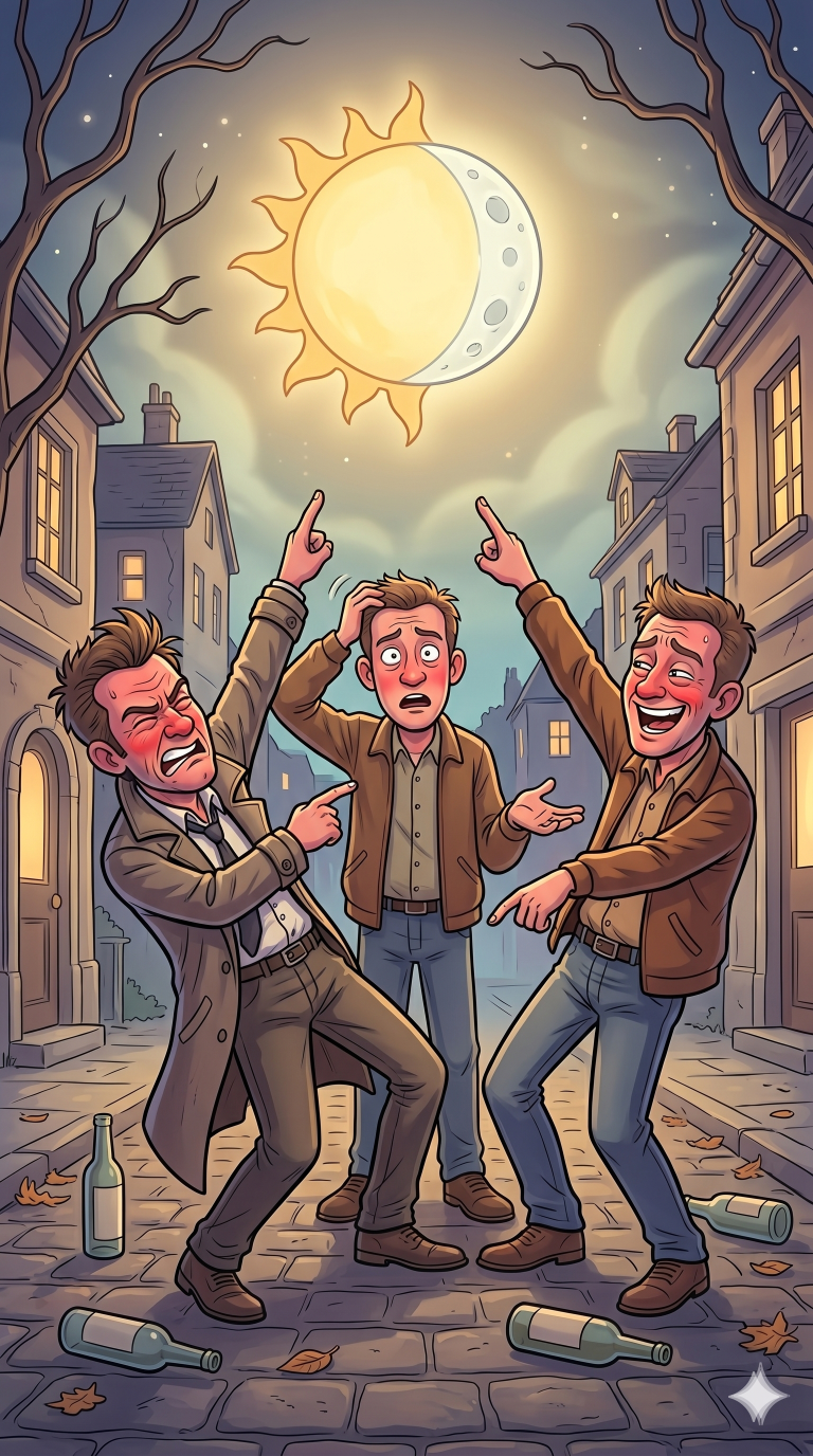 The third man seems up on the sky… pauses… then seems again at them and says:
